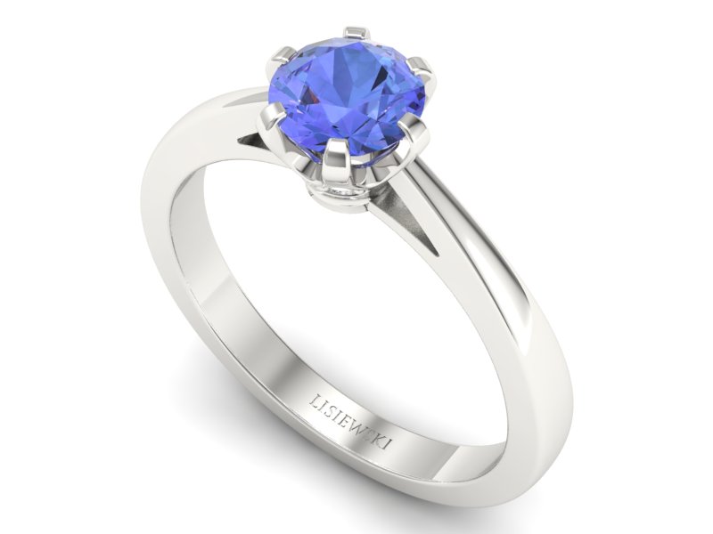 Wyjątkowy pierścionek białe złoto z tanzanitem 0.66ct i diamentami 0.03ct, złoto próba 585, Kup śliczny złoty pierścionek
