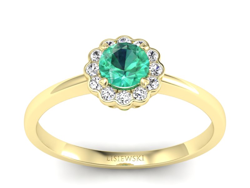 Złoty pierścionek ze szmaragdem i brylantami - p16197zsm