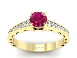 Każdy detal pierścionka jest starannie przemyślany i wykonany z najwyższą precyzją. Rubin film i brylanty są umiejscowione tak, aby harmonijnie komponowały się ze sobą, tworząc niepowtarzalną kompozycję.