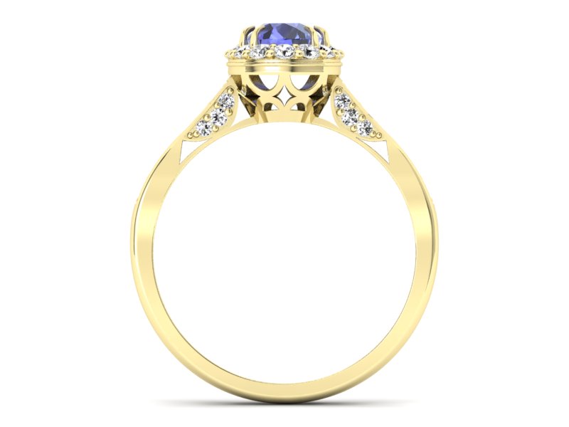 Pierścionek z tanzanitem i brylantami żółte złoto - p16025zt - Poleć