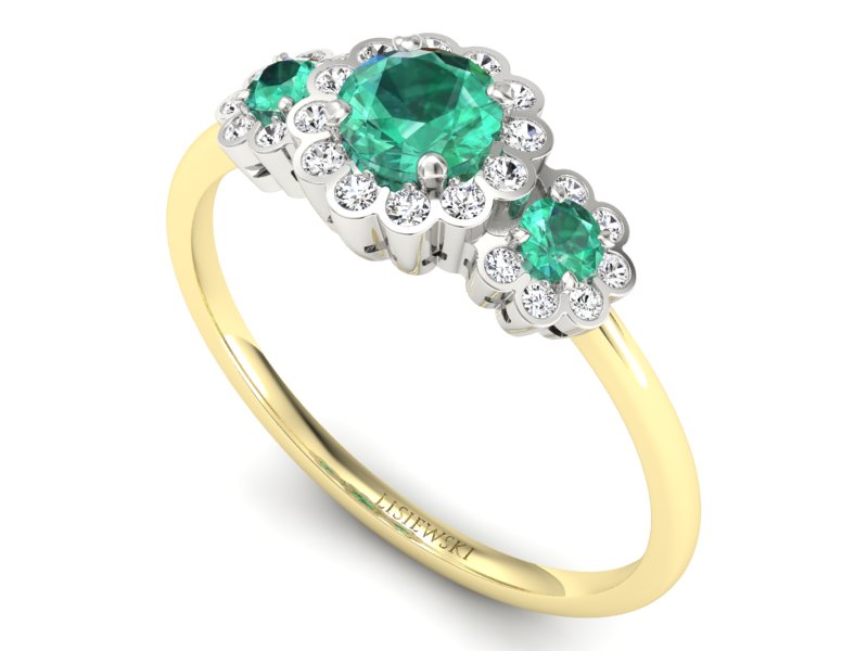 Złoty pierścionek ze szmaragdami i brylantami - p16196zbsm - Zapytaj