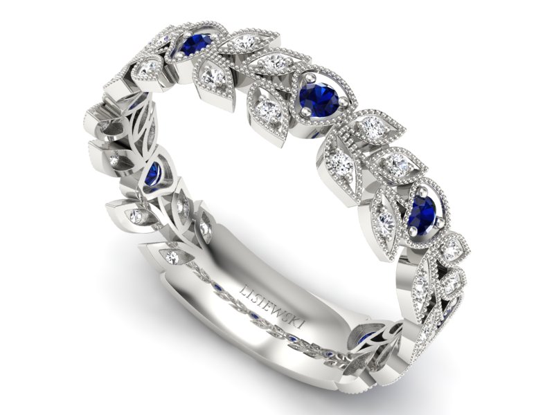 Obrączka białe złoto z szafirami i brylantami - p16231bsz - Zapytaj