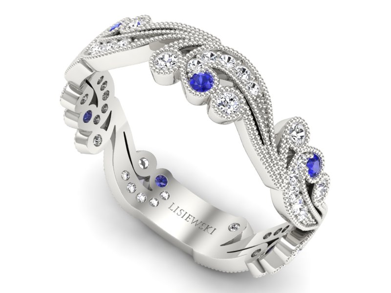 Obrączka z szafirami i brylantami białe złoto - p16271bszc - Zapytaj