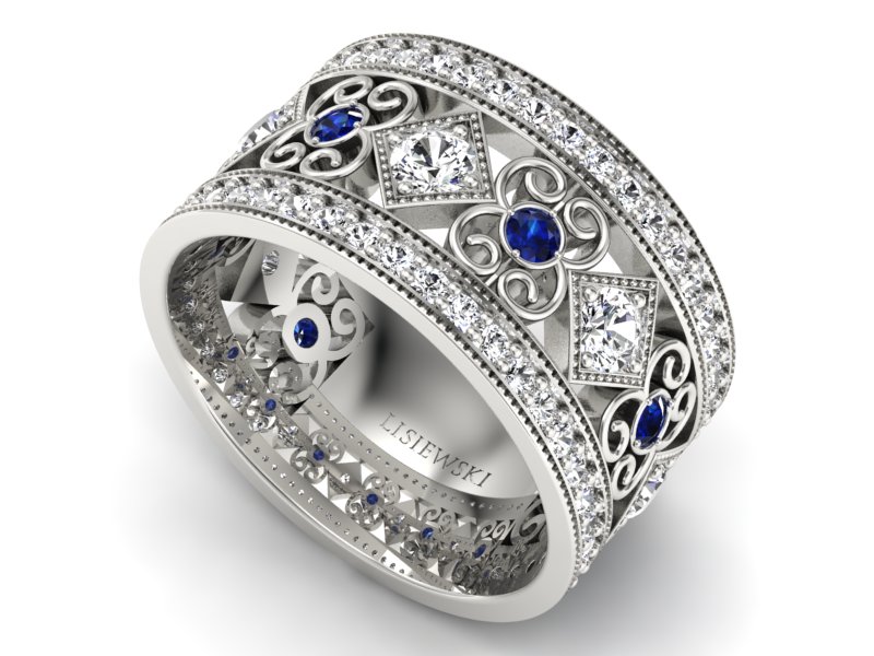Pierścionek obrączka z brylantami z szafirami - P15022bszaf - Zapytaj