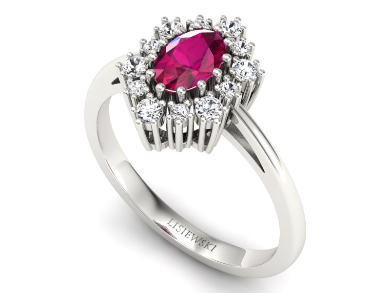 Pierścionek z rubinem i brylantami białe złoto - p15074br - Zapytaj