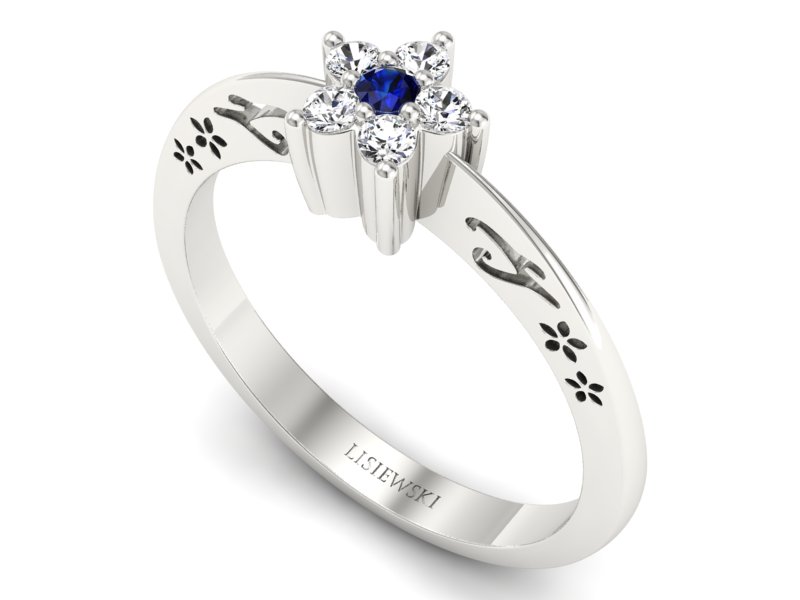 Pierścionek z szafirem i brylantami białe złoto - P15109BS - Zapytaj