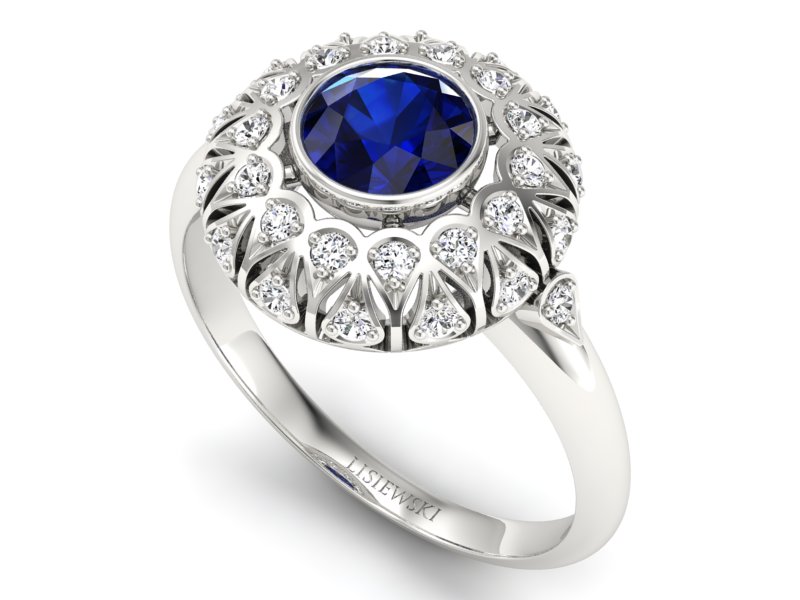 Pierścionek z szafirem i brylantami białe złoto - p16189bsz - Zapytaj