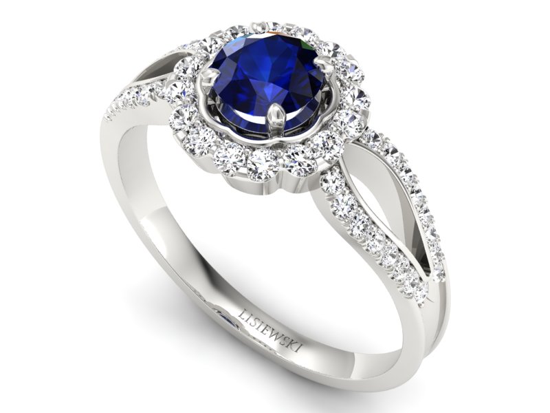 Pierścionek z szafirem i brylantami białe złoto - p16208bsz - Zapytaj