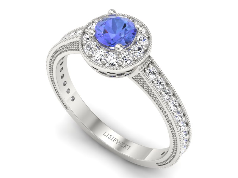 Pierścionek z tanzanitem białe złoto i brylantami - p16629bt - Zapytaj