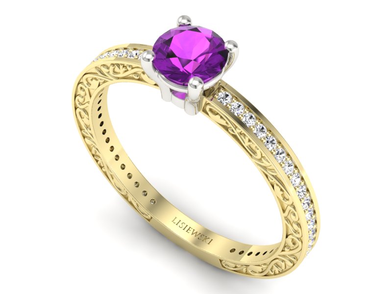 Złoty pierścionek z ametystem i brylantami - p16279zbat - Zapytaj