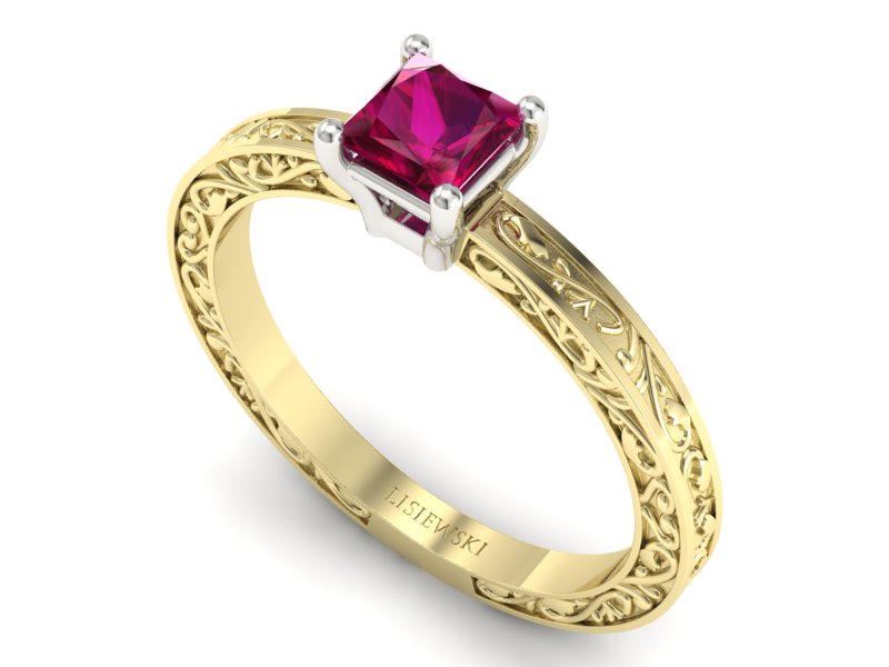 Pierścionek z rubinem żółte białe złoto - p16276zbr - Zapytaj