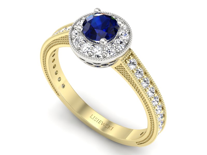 Złoty Pierścionek z szafirem i brylantami - p16629zbsz - Zapytaj