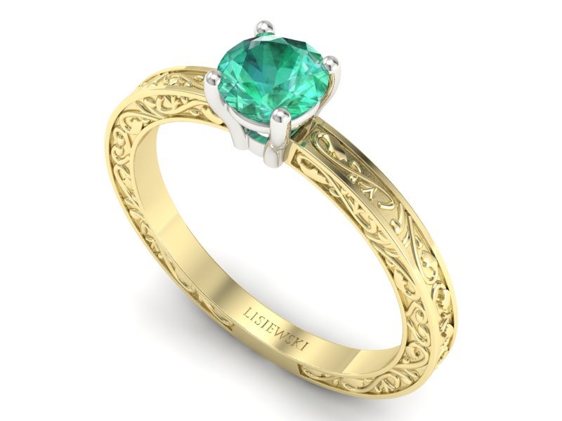 Pierścionek ze szmaragdem żółte i białe złoto - p16278zbsm - Zapytaj