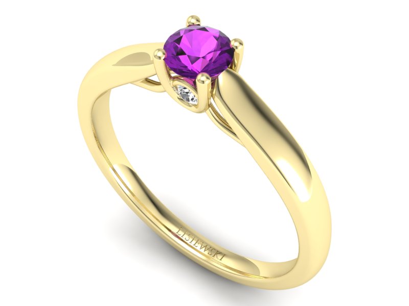 Pierścionek z ametystem i brylantem żółte złoto - p16442zat - Zapytaj