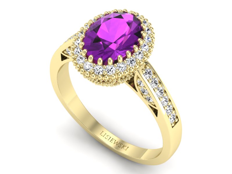 Pierścionek z ametystem z brylantami żółte złoto - p16595zat - Zapytaj