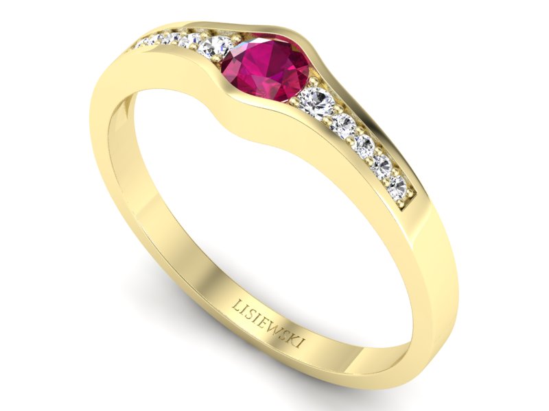 Złoty pierścionek z rubinem i brylantami - p16468zr - Zapytaj