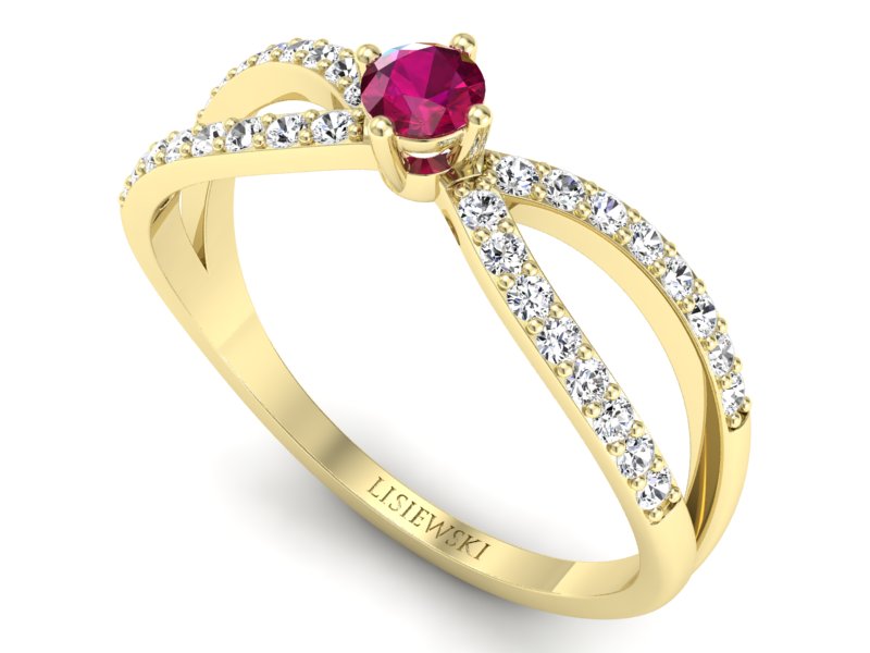 Pierścionek z rubinem i brylantami żółte złoto - p16067zr - Zapytaj