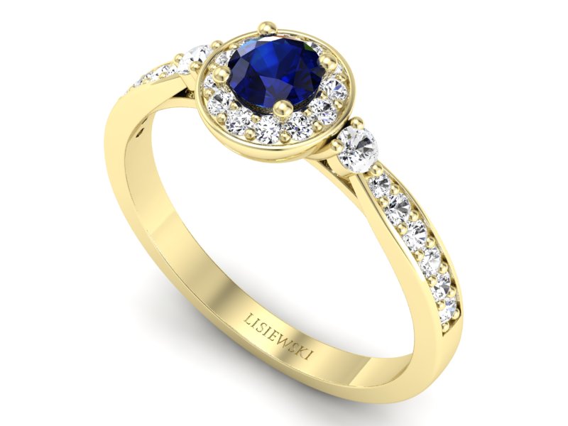 Złoty pierścionek z szafirem i brylantami - p16582zsz - Zapytaj
