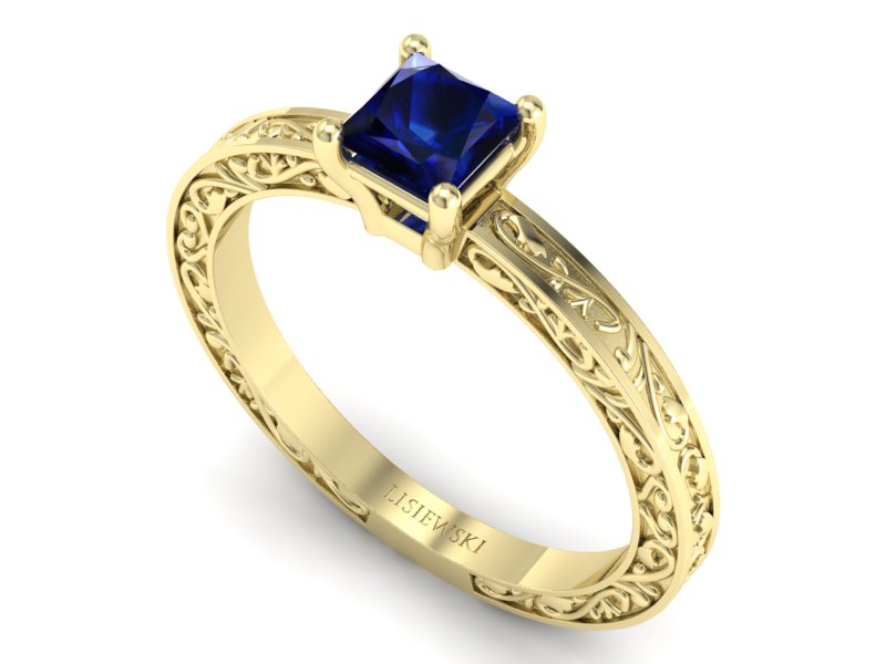 Złoty Pierścionek z szafirem żółte złoto 585 - p16275zsz - Zapytaj