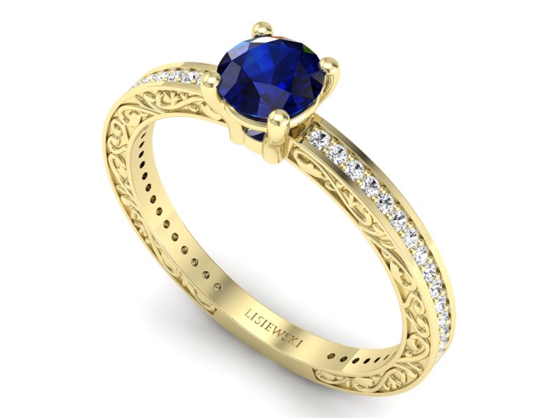 Złoty pierścionek z szafirem i brylantami - p16279zsz - Zapytaj