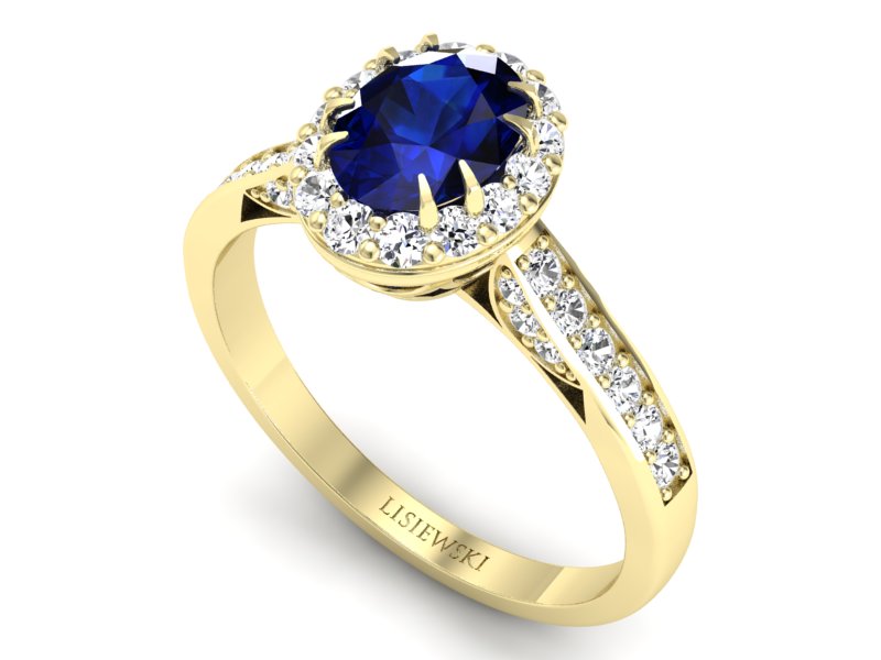 Pierścionek z szafirem i brylantami żółte złoto - p16025zsz - Zapytaj