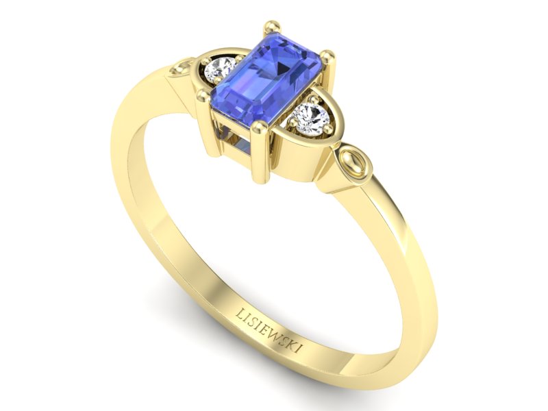 Pierścionek z tanzanitem i brylantami żółte złoto - p16134zt - Zapytaj
