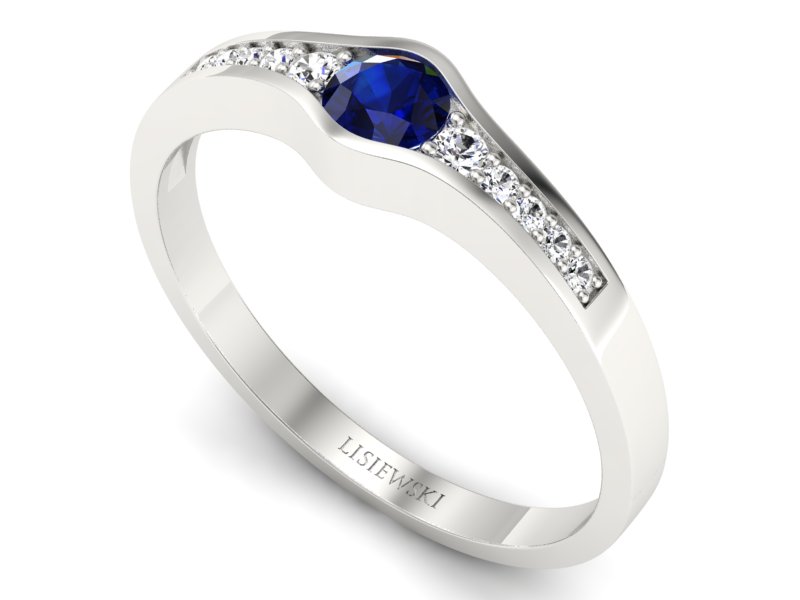 Złoty pierścionek z szafirem i brylantami - p16468bsz - Zapytaj