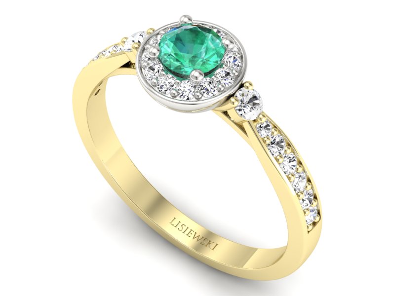Złoty pierścionek ze szmaragdem i brylantami - p16582zbsm - Zapytaj